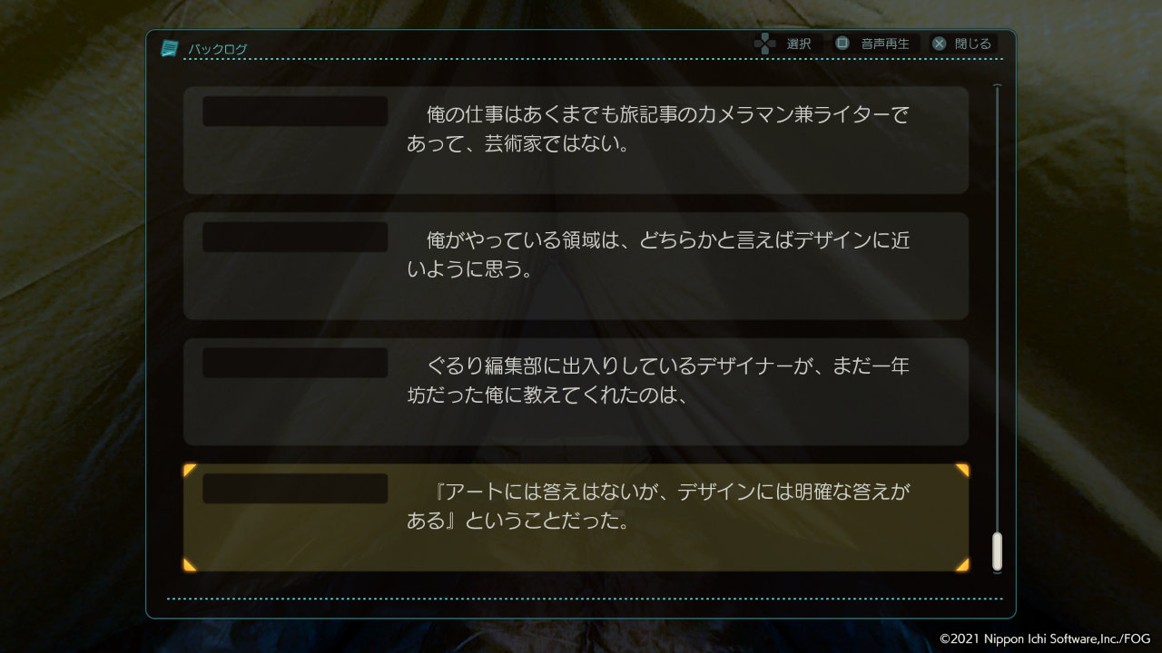 エンディングの展開自体は変わらないものの、プレイヤー的にはなんとなく後味悪く岐阜を発つことになるので(それでも渋川デスクは「お前には光るものがある」とは言ってくれる)、「本当はもっと気ままに記事をアップしたい」と思いつつも、いつも最低半分くらいは高評価を得られる記事を入れてしまう。